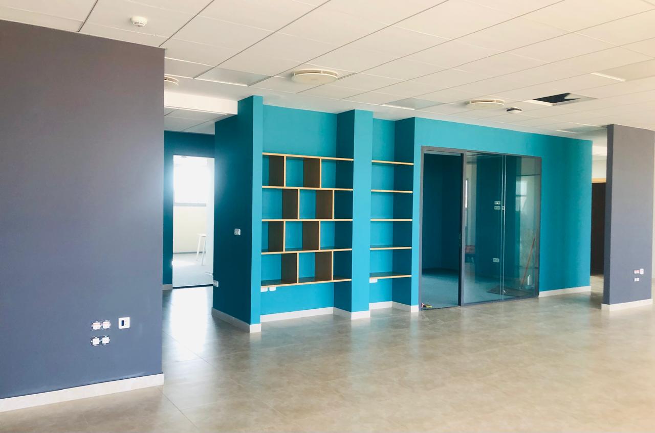 La moquette au sol a été posée sous forme de dalles modulaires 60x60 cm, assurant...
